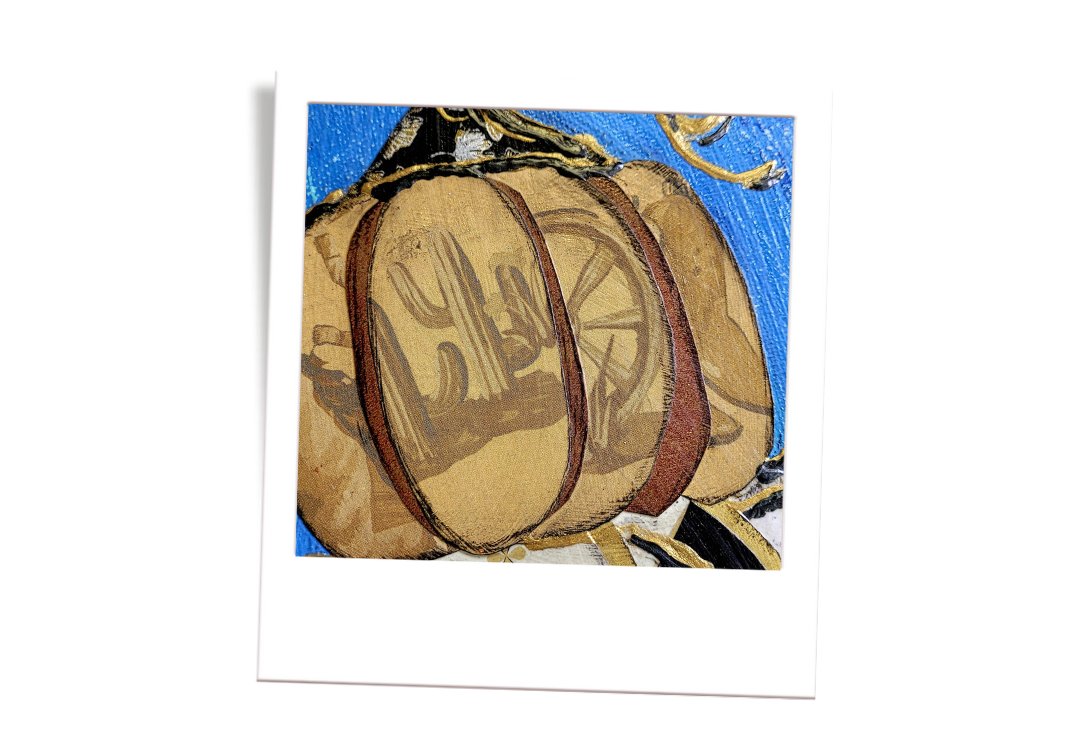 I adore a neat pumpkin stack, especially one with so many color combination possibilities that won’t topple over. With a simple blustery sky background, pattern becomes the focus of this design, offering endless number and arrangement options for any size canvas. Time to pull out the perfect plaid and Houndstooth paper or fabric combinations.