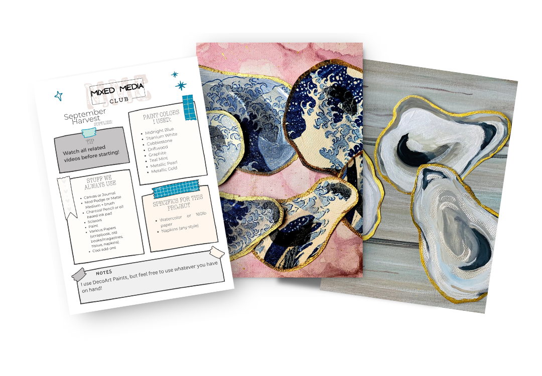 Nothing says fall on the Outer Banks of North Carolina like fresh oysters! These beauties are sustainably harvested for your creative enjoyment! Whether you choose to try the hand painted version or use your favorite themed napkins, your finished oyster design elements will look fabulous on your faux wood background!